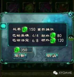 如果你对这次配置不满意,可以重置,要点来了,每一个英雄法宝下面都有一个锁字,只要你看到满意的法宝英雄把他锁起来,下次重置这将会保留,最多可以锁4个英雄,8个法宝!。每多一个锁重置的费用就会多20玉,不要小看这20玉,锁定达到最大值也需要240玉了,而且每次重置阵容价格会上涨,就算是土豪也是很肉疼的,所以脸好的同学一定程度上比土豪们更厉害!