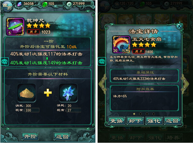 法宝选择不做赘述,看个人需求喜好和财力资源。储存稀有法宝合成高阶法宝是是后期强大的基础。