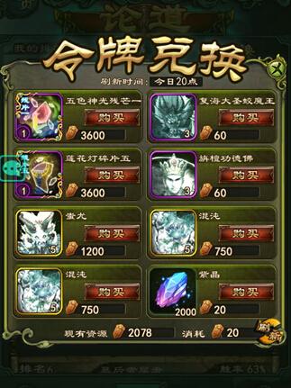 天看一下功德商店的阵法英雄,有的话可以秒掉,虽说不搞活动时比活动时贵点,但是,这个不需要可以刷新,就可以买到。活动时需要不断刷新,而刷新的消耗也