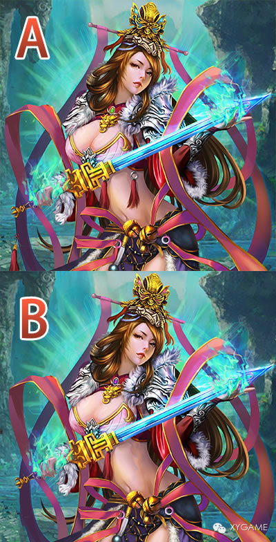 请玩家仔细观察以下A、B两图,找出两图间有几处不同